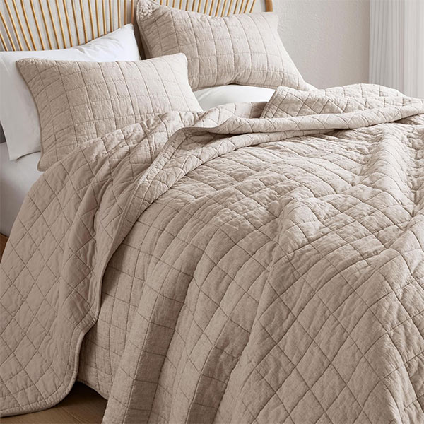 Hyde Lane’s quilt set blends premium linen and cotton for a soft, breathable feel that enhances any bedroom. Its elegant box-stitched design offers durable, all-season comfort with effortless style.